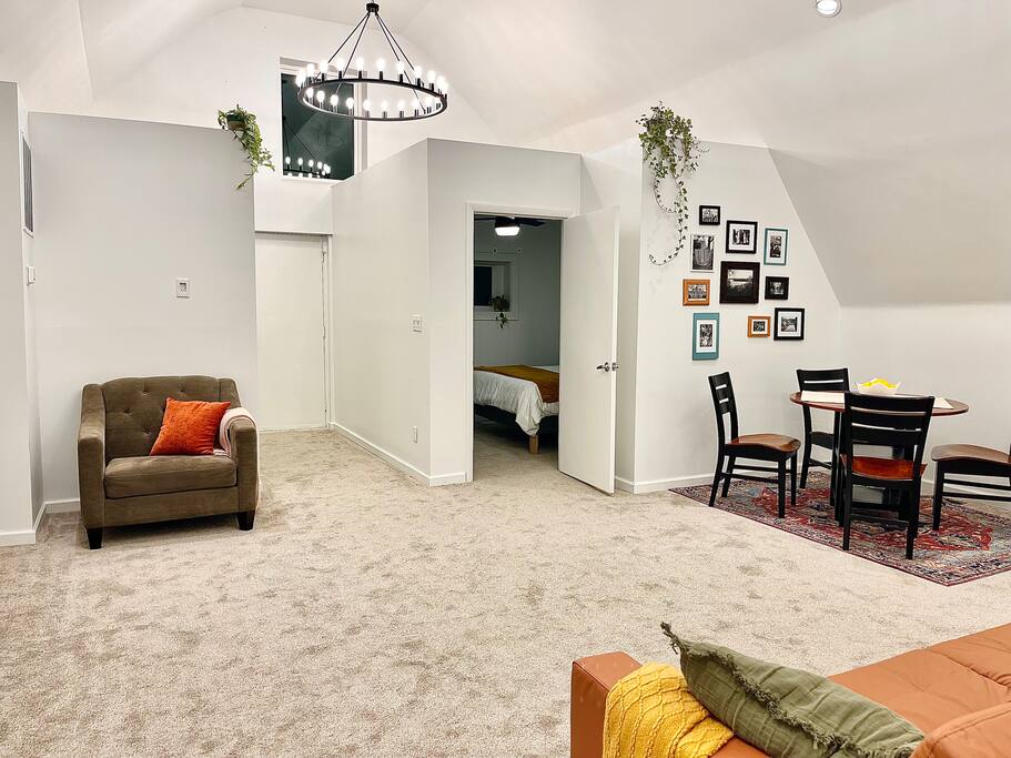 Located only 6.6 miles from IU and only 3.5 miles from lake Monroe, this century-old dairy barn is now a stylish guesthouse. Vaulted ceilings upstairs provide tons of natural light and room to be together. We have it all: an arcade game, karaoke, board games, hot tub, disc golf basket, and cozy fire pit. NEW THIS SUMMER: A one-of a-kind escape room style game with puzzles, ciphers and hidden clues. Beat the clock to find Daisy, the farmer’s missing dairy cow!